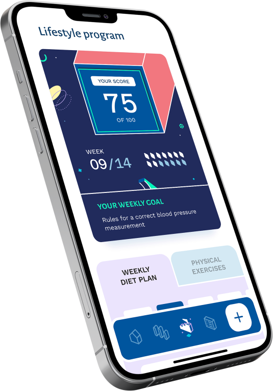 A aplicação AMICOMED-P5 integra um programa de 3 meses através do qual se promove a monitorização e gestão da hipertensão arterial. Isto é feito com um algoritmo de inteligência artificial que ajusta o programa e as tarefas ao perfil, aos registos e às necessidades do utente.